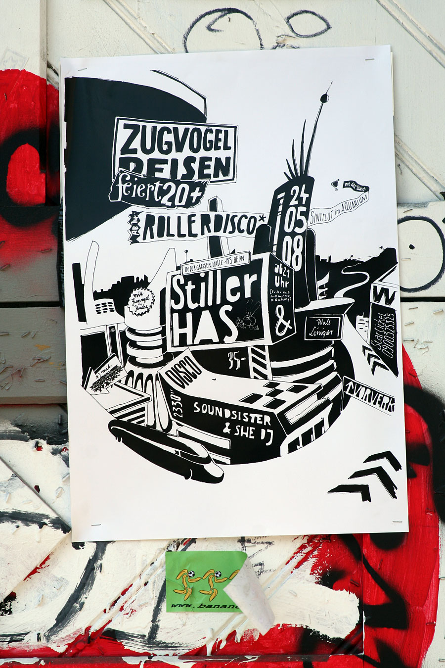 [din a2, weiss auf schwarz & schwarz auf weiss. mal wieder siebdruck (by hakim!)] - angelehnt an eine uralt-werbung der vögel [die einfach nicht zu toppen ist]