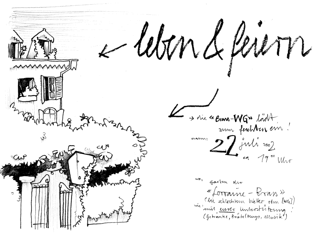 ein kleiner schnell skizzierter flyer für unsere wg(haus)party